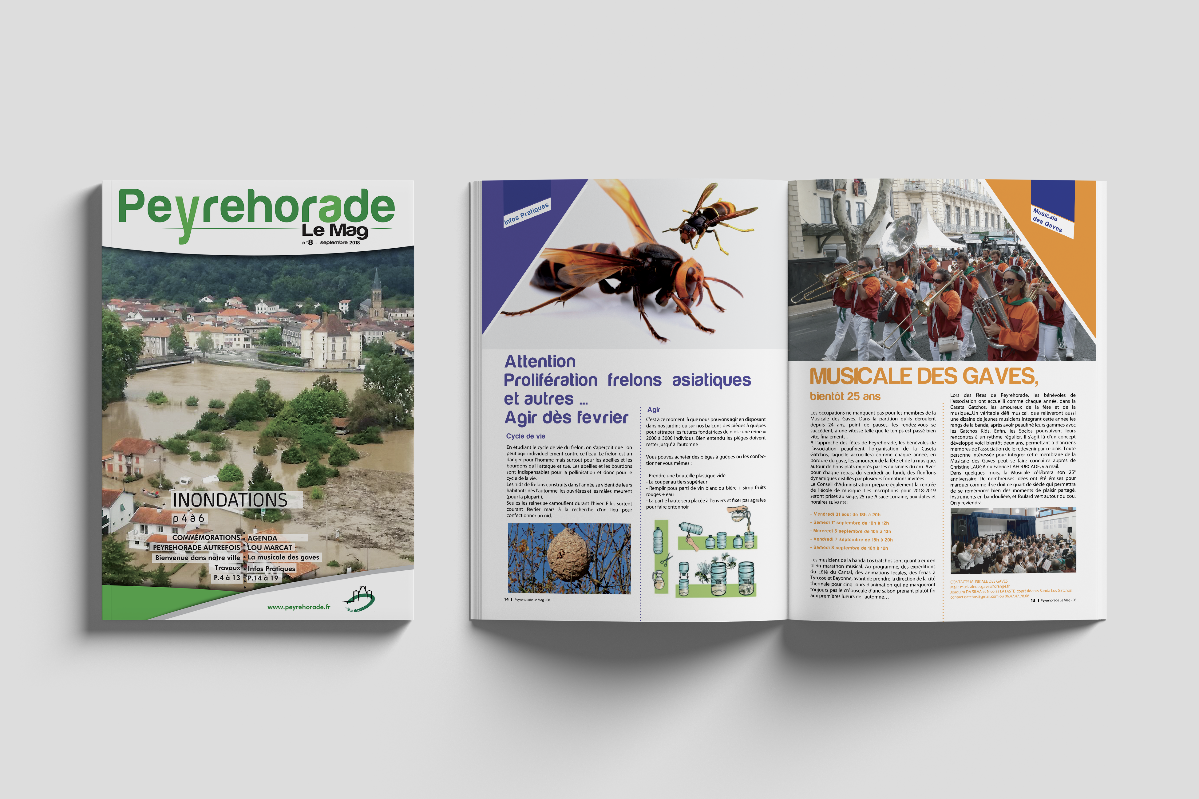 Les mairies de Peyrehorade et Salies-de-Béarn ont sollicité mes services pour les campagnes d’affichage en ville pour divers événements municipaux ainsi que pour la création de leur revue annuelle.